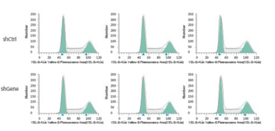 通过流式细胞术检测PI荧光强度直接反映细胞各时相的DNA分布状态,从而计算出各时相的百分率。