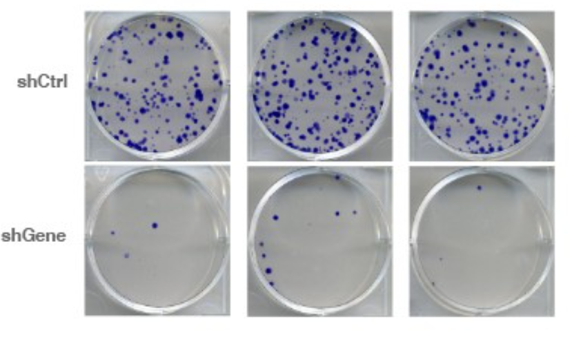 克隆形成是测定细胞增殖能力的有效方法之一。单个细胞在体外持续6代以上,其后代所组成的细胞群称为克隆。这时每个克隆含有50个以上的细胞,大小在0.3-1.0 mm之间,通过计数克隆形成率,可对单个细胞的增殖潜力做定量分析,了解细胞的增殖能力和独立生存能力。常用的方法有:平板克隆形成实验和软琼脂克隆形成实验。